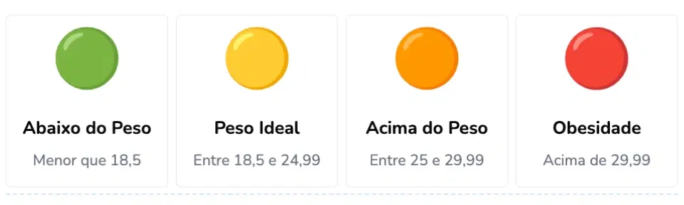 Índice de Massa Corpórea (IMC) após calculo do seu peso e altura